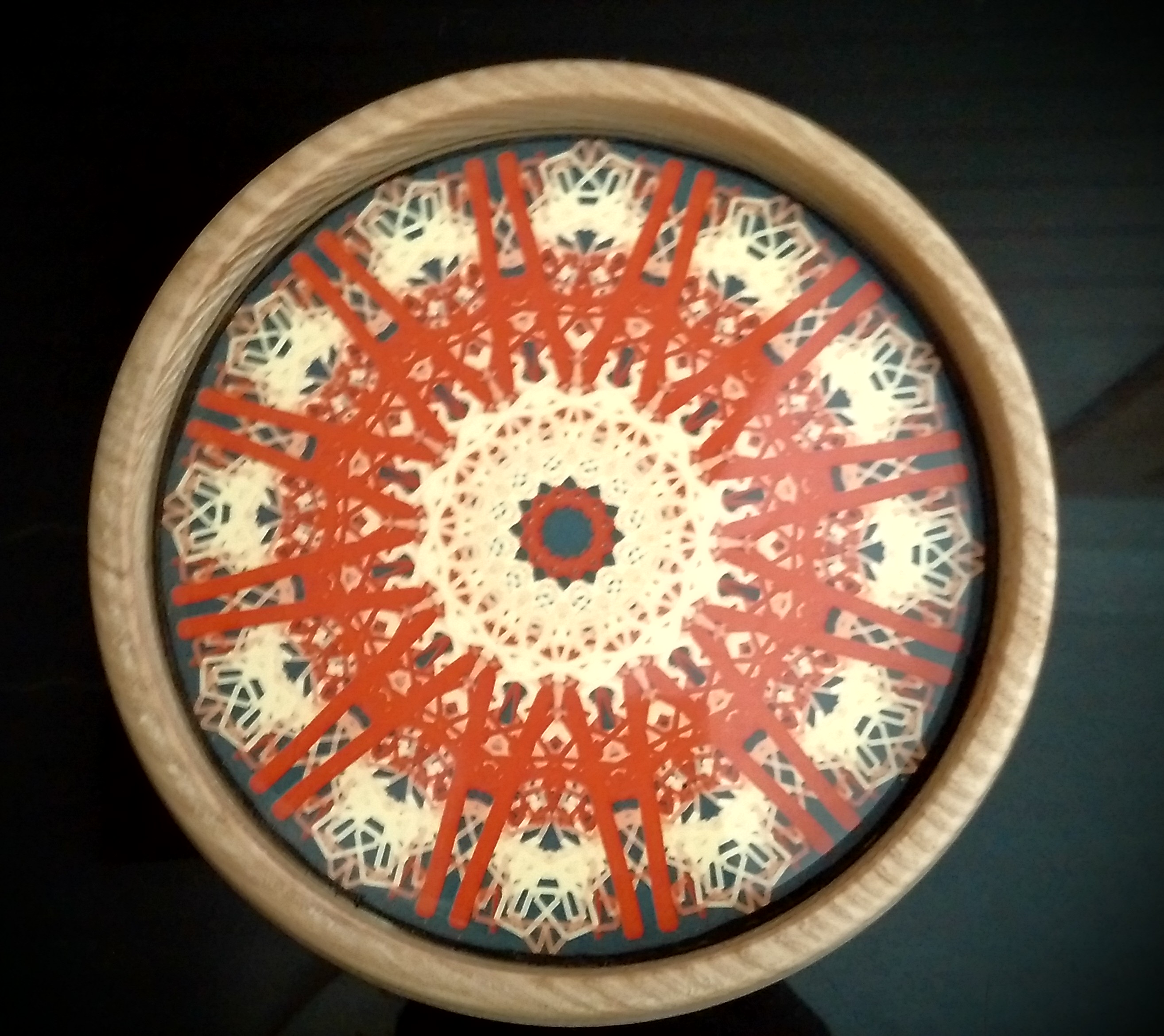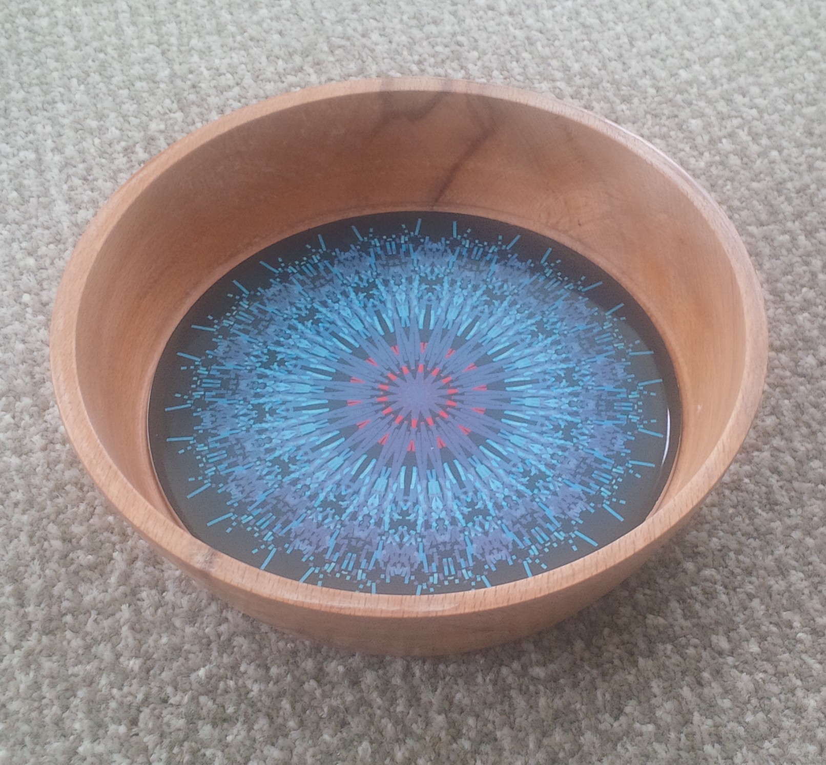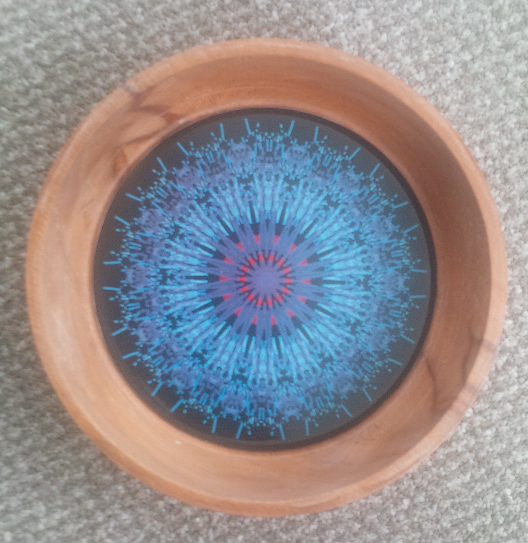 We can produce bespoke exotic wood bowls 8 inches up to 10 inches in diameter featuring the mandala artwork of your choice. Turned Bowls cost typically 30 to 50 UK pounds plus postage dependent on the exotic wood cost. Timescales are normally 2 weeks from date of order. Each bowl is central heating stabilised and polished with carnauga and beeswax. Carnauga wax is the hardest known natural wax and is derived from the the leaves of the palm Copernicia prunifera (Synonym: Copernicia cerifera), from Brazil. The mandala themes are specified by a letter code (below)to be quoted when ordering. Available woods include Oak, Ash, Yew, Elm, Padauk, Beech, Zebrano, Bubinga, Walnut and Maple.